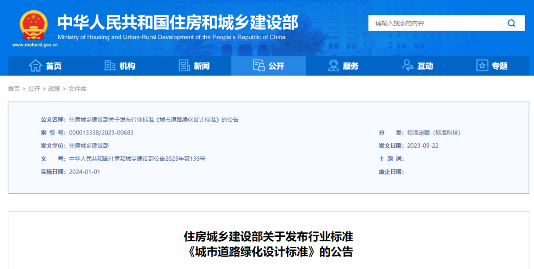 行業(yè)標準 | 住建部發(fā)布行業(yè)標準《城市道路綠化設計標準》